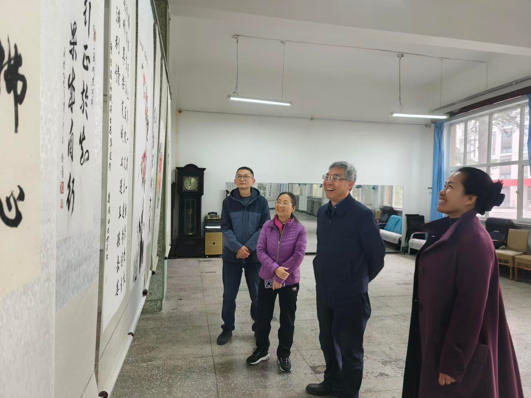 郑金平首先参观了离退休老同志“清风拂心、廉韵同行”和“铭记历史 珍爱和平”书画展,认真欣赏每一幅作品,对老同志精湛的技艺和饱满的创作热情给予高度赞扬。他指出,要充分发挥文化作品育人化人的作用,组织老同志多与青年学生开展活动,提升学生的审美素养与人文精神,加强爱国主义教育,弘扬优秀传统文化。